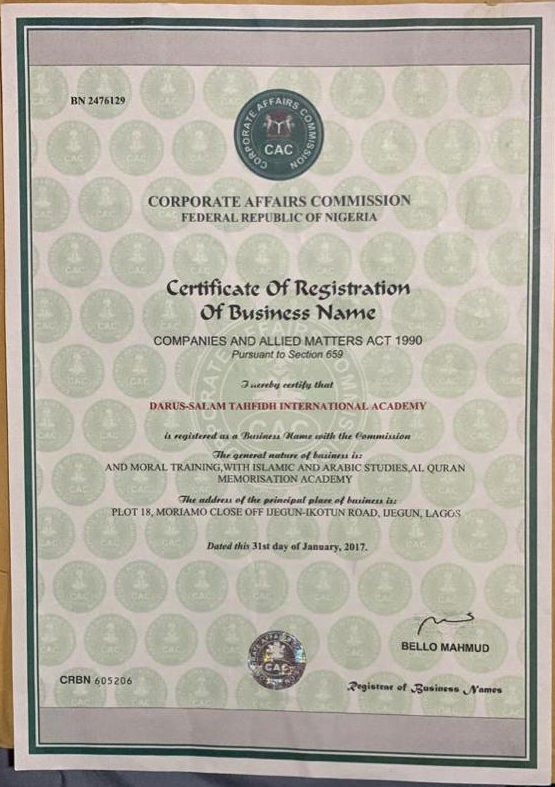 Daarus Salam Tahfidh Int'l Academy was established in Ijegun in Alimosho Lagos state, Nigeria in 2016 to cater for the yearnings of parents who seek a Quran memorization academy of international standard. Learning and memorizing the holy Quran with fun in a comfortable environment. The goal of the school is to maximize your child's ability to memorize the Holy Quran in the shortest duration possible while ensuring long term retention.